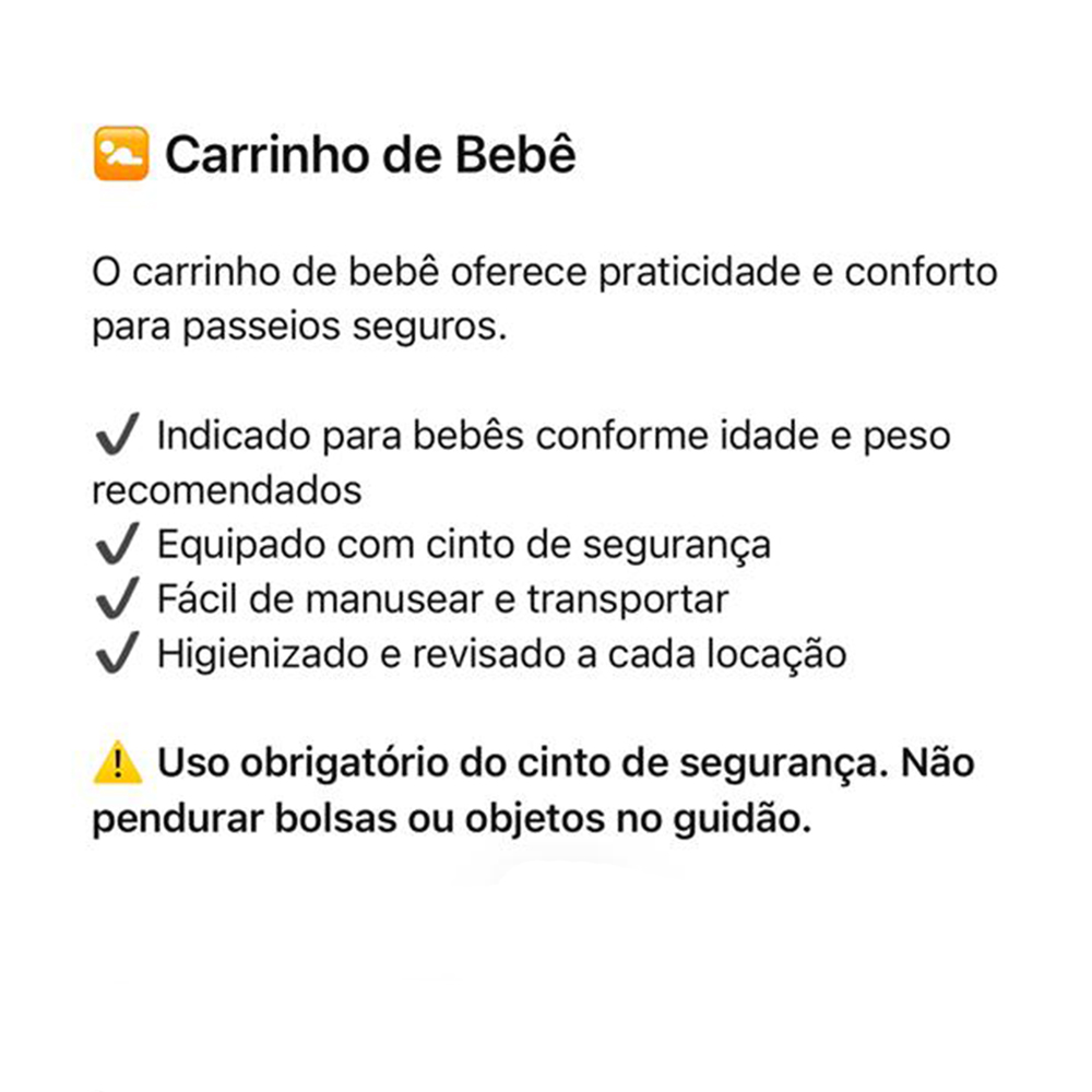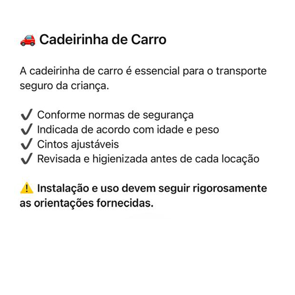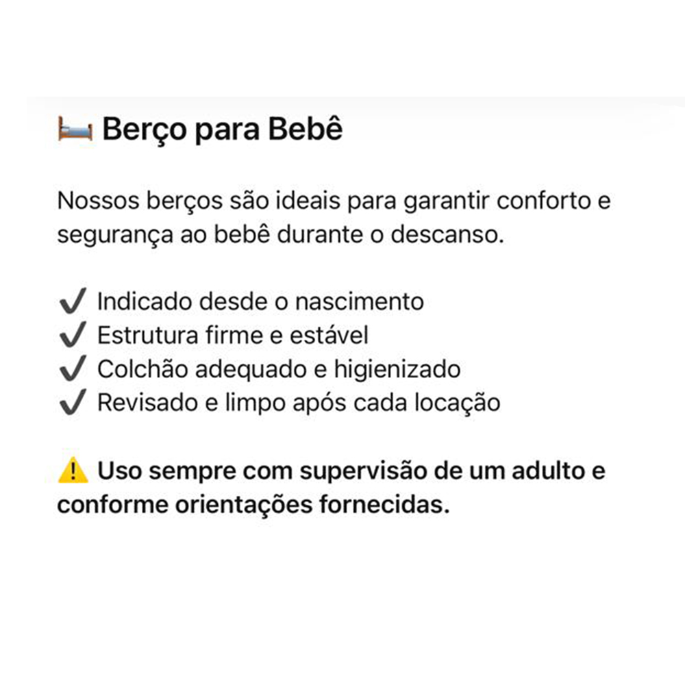 Somos uma empresa especializada em locação de itens para bebês e crianças, oferecendo praticidade, economia e segurança para as famílias. Trabalhamos com produtos de qualidade, higienizados e revisados, como carrinhos de bebê, berços, cadeiras de carro, cadeiras de alimentação e banheiras. Nosso objetivo é facilitar a rotina dos pais, garantindo conforto e tranquilidade em cada fase do bebê.